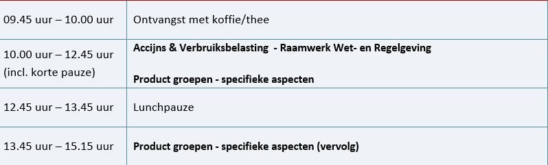- specialisten vanuit de indirecte belastingen die (bestaande) kennis willen refreshen en updaten, en;