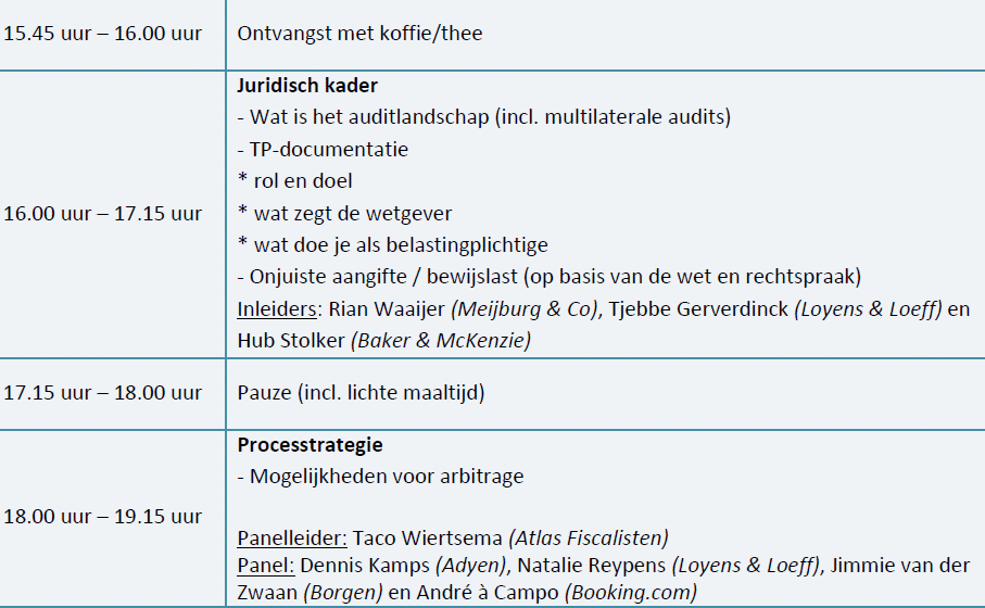 Dit seminar is bedoeld voor gewone NOB-leden die zich in de dagelijkse praktijk bezighouden met Transfer Pricing. Aan deze cursus kunnen geen aspirant-leden deelnemen.