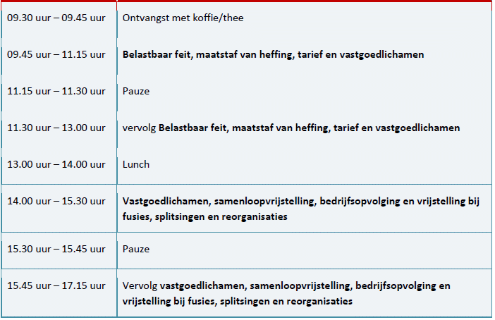 Bij vastgoedtransacties speelt de heffing van overdrachtsbelasting een belangrijke rol. Deze cursus is bedoeld voor belastingadviseurs die een goed en actueel beeld willen krijgen van de belangrijkste overdrachtsbelastingaspecten van vastgoedtransacties. Tijdens de cursus besteden we aandacht aan het belastbare feit, de regels voor vastgoedlichamen, grondslagverminderingen en enkele belangrijke vrijstellingen zoals de samenloopvrijstelling en de vrijstelling bij fusies, splitsingen en reorganisaties.