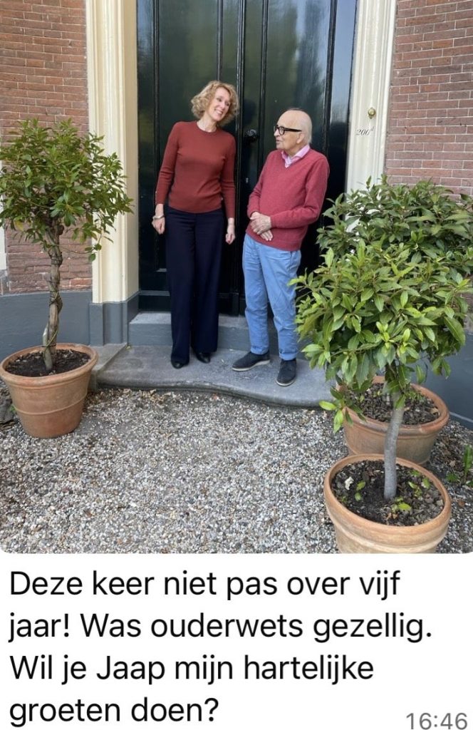 Jaap: Ik vond Frits echt iemand van adel. Ik wist toen nog niet dat hij ook kasteelheer was, maar hij stak boven het gemiddelde uit. Hij kon goed met iedereen omgaan en iedereen op een prettige manier de richting op bewegen die hij voor ogen had. Een echte diplomaat. Hij opende deuren, zag de kwaliteiten van mensen en kon met grote charme iedereen in de gewenste richting dirigeren. Wat mij verder bijstaat, is dat hij buitenlandse delegaties met alle egards ontving. Met zijn diplomatieke gave, hoewel hij de belastingadvieswereld vertegenwoordigde en dicht tegen de ambtelijke wereld aan bewoog, maakte hij veel vrienden. Hij was ook goed in het selecteren van de juiste mensen om zich heen.
